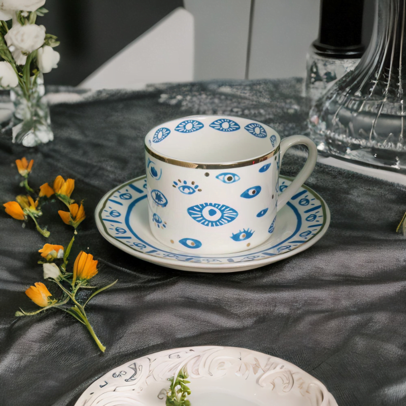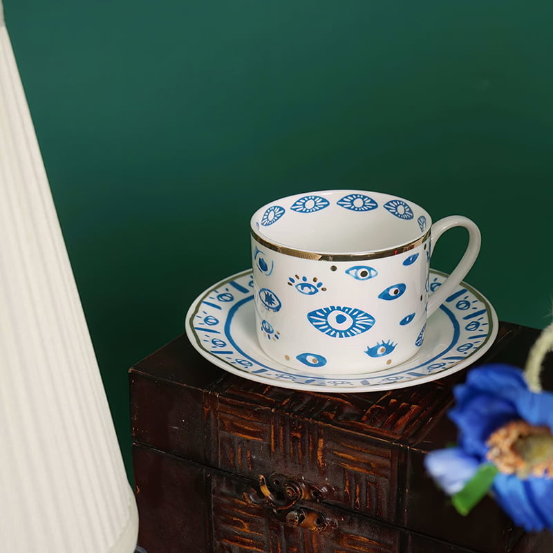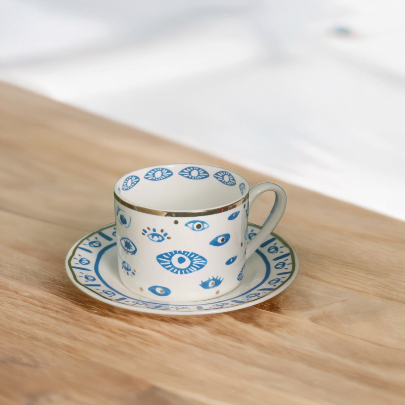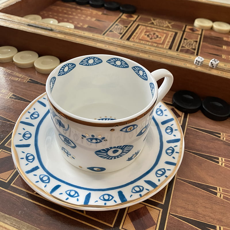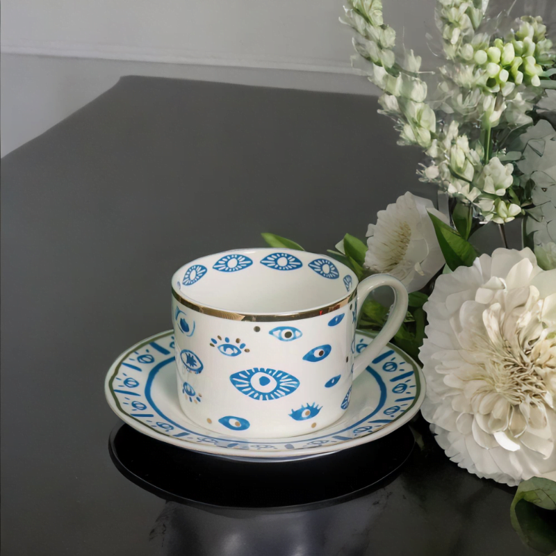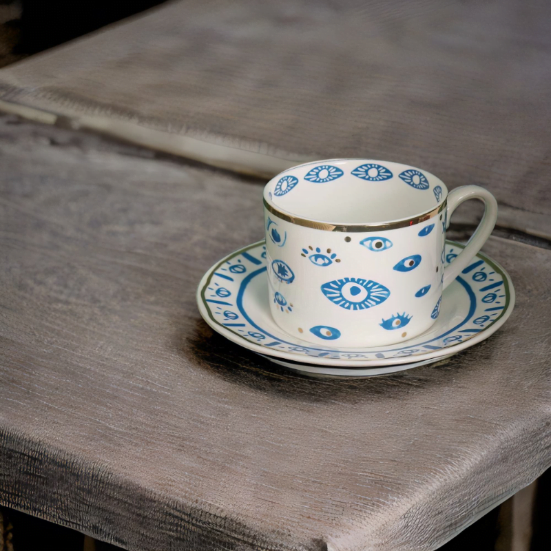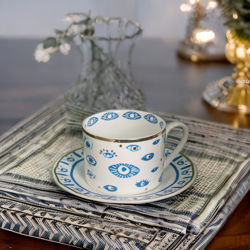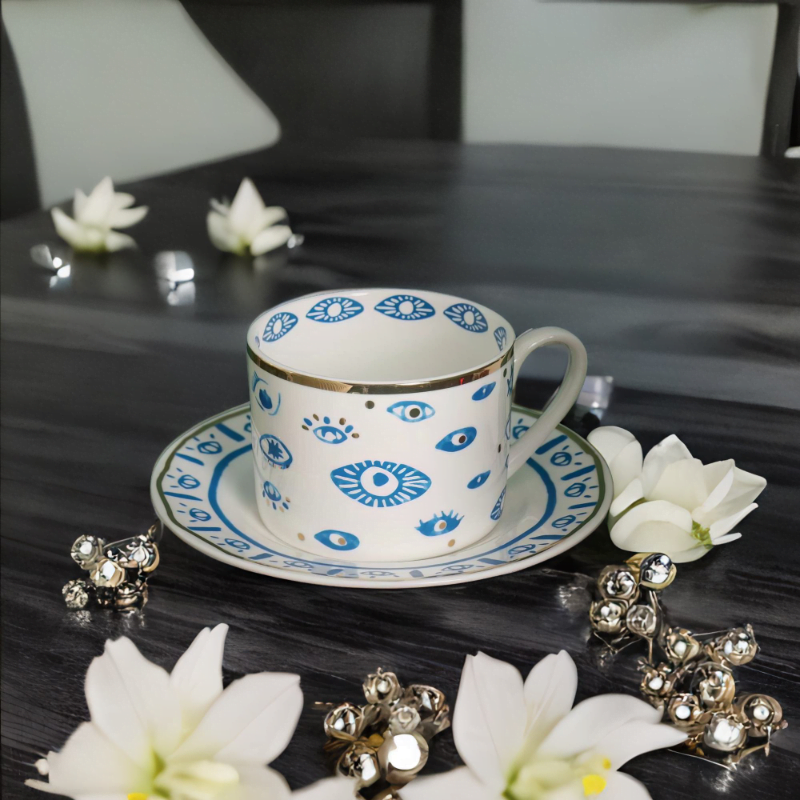 – Elegant Design – Handmade and painted in a traditional style, this mug is a stunning blend of elegance and symbolism. Featuring a beautiful blue evil eye design with gold accents.