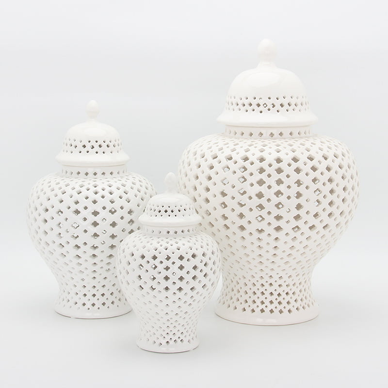 Elevate your home decor with our Ceramic Ginger Jar Set, in pristine White.