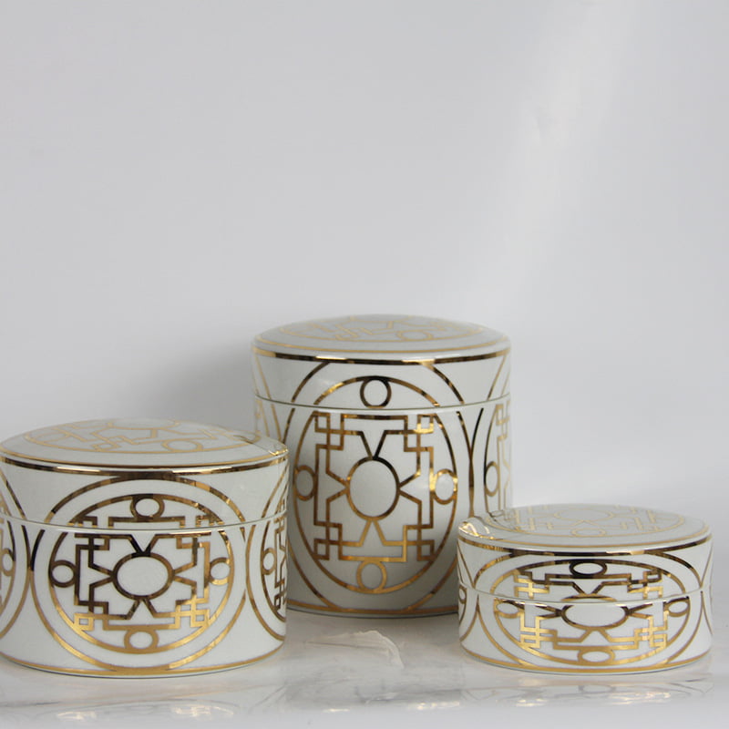 Introducing our Gold Canister Set, a trio of white ceramic canisters with stunning gold accents and matching lids.