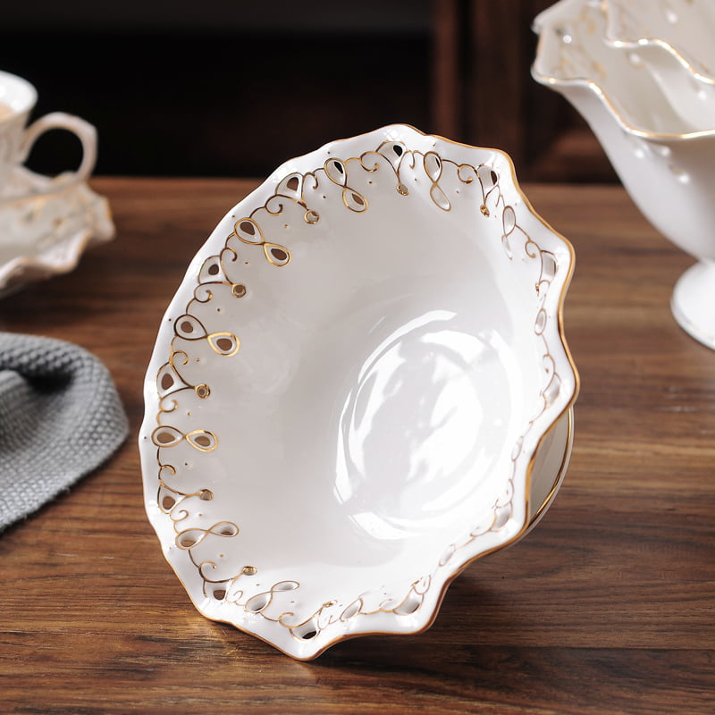 This exquisite set includes three white porcelain plates, each meticulously finished with elegant golden edges, adding a touch of luxury to your tableware collection.