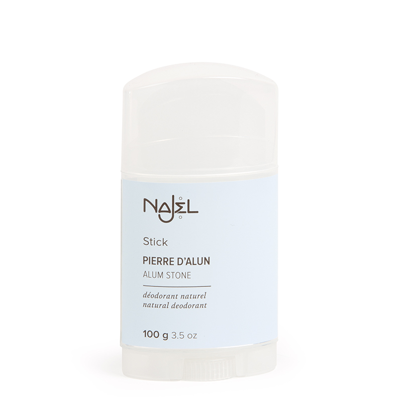 Alum stone is obtained from alum crystals which are directly extracted from natural alunite quarries. Najel offers it polished as a stick to match the shape of the underarms for rapid application. The alum stone, whose astringent properties neutralize perspiration and prevent the development of bacteria responsible for bad odors, makes an excellent natural deodorant. Hypoallergenic and odorless, it can be used on a daily basis, sightly moistened and applied directly to skin. Its lifetime of about one year is equivalent to the period of use of ten traditional deodorants. Find all the benefits of alum stone in an easy-to-use stick!