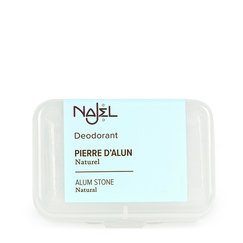 Alum stone is obtained from alum crystals which are directly extracted from natural alunite quarries. Najel proposes it polished, in a small plastic box, ideal for carrying even when still wet. The alum stone, whose astringent properties neutralize perspiration and prevent the development of bacteria responsible for bad odors, makes an excellent natural deodorant. Hypoallergenic and odorless, it can be used on a daily basis, sightly moistened and applied directly to skin. Its lifetime of about one year is equivalent to the period of use of ten traditional deodorants.