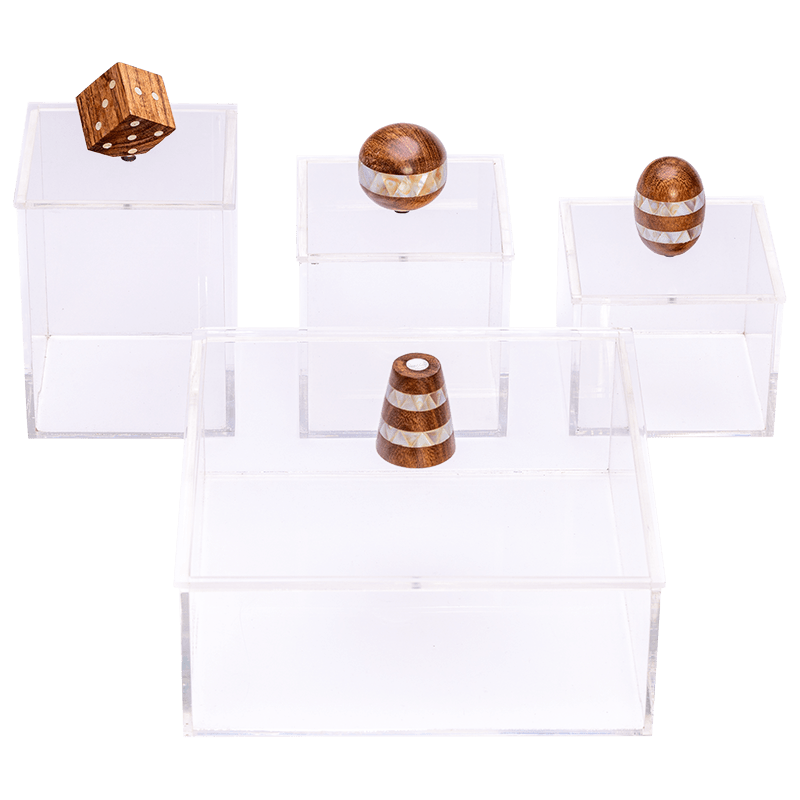 A set of 4 Acrylic Storage Boxes with a Gorgeous Mother of Pearl Lid Handle