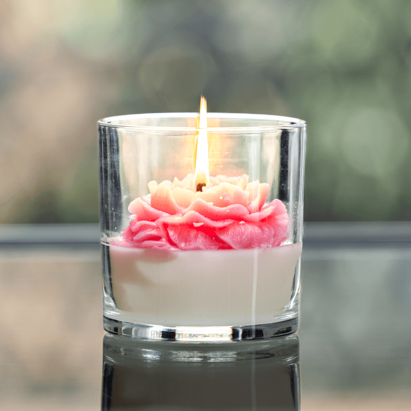 Bring a touch of elegance and charm to your home with this beautifully crafted Rose Flower candle. Encased in a clear glass jar, this candle features a delicately sculpted and hand-made pink flower emerging from creamy white wax — a stunning decorative piece even before it’s lit.