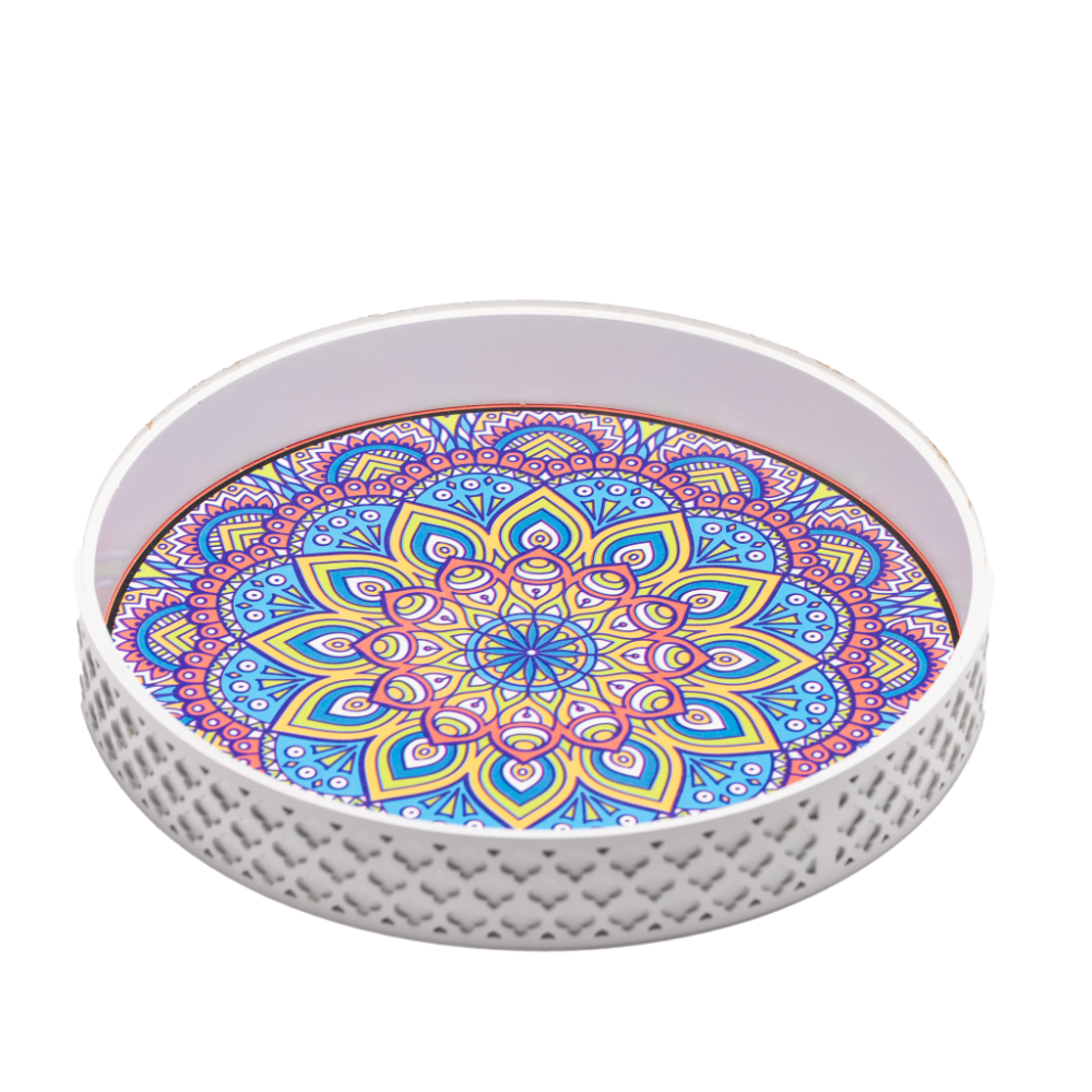 Introducing the White Mandala Round Decorative Tray – the perfect blend of elegance and utility.
