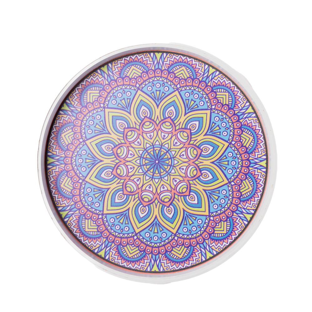 Crafted with a keen eye for artistry and functionality, this Wooden Round Tray boasts a stunning Mandala pattern that adds a touch of artistic charm to any space.